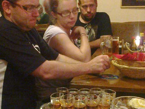 nám přišel Charlie a kamarádem. Dorazili i lenoši z Barrandova Káňa s Ytongem. Standa s přítelkyní a dva psíííí. Na našeho výčepního až moc lidí. Pár lidiček pokračovalo ještě