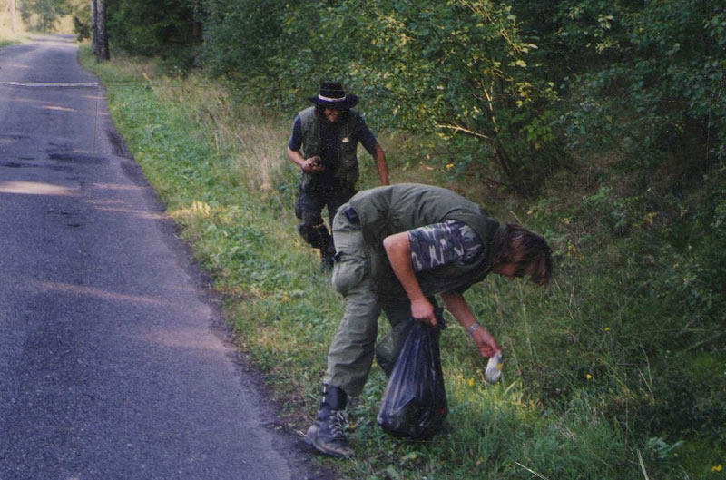 | Pátek 8.9.2000 Sobota 9.9.2000 kačer a Simona odjeli a Car s Karlem sváželi plné pytle s odpadky. Nakonec sme se všichni sešli v Kokořínském dole v občerstvení, tam sme chvíli poseděli, popili, sehnali asi deset pulitrů a odebrali se do kempu. Tam se chlapi vydali na dřevo do lesa. Dovalil se Udělal se ohýnek, narazil se soudek a byla pohodička. Tedy do doby dokud nepřišli vybírat za kemp. Hlavně Žába nechtěl platit. Přijeli i majitelé a domluvilo se 15 lidí a 4 auta za 150,-, to bylo výhodný. Akorát žába byl furt vsteklej a nasranej, nechtěl platit nic. tak se nasral a odjel. Začli sme píct kuřata, a pilo se pivečko, zpívalo se a hrálo na kytary. Jako první šli spát Tomáš s Luckou a všichni ostatní se dobře bavili při jejich milostných hrátkách, které doprovázeli šílenými hlasovými projevy. Neděle 10.9.2000 |